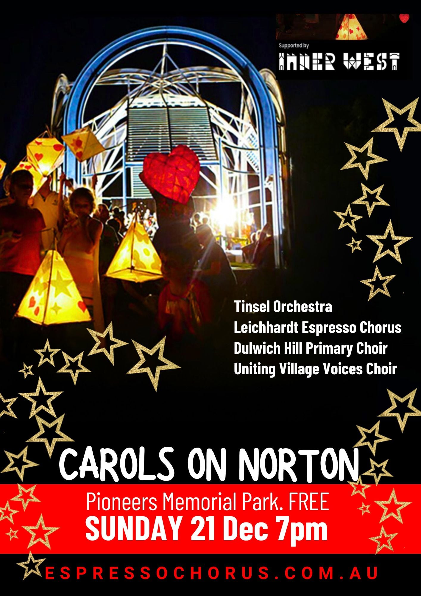 It’s on again! Carols on Norton, the magical outdoor musical experience under the stars is back at Pioneers Memorial Park on Sunday 21 December at 7pm. Sit back with your family and friends as the sun goes down and sing along with the Leichhardt Espresso Chorus, the Dulwich Hill Primary Choir, the incredible Tinsel Orchestra and more! It’s all free and sponsored by the Inner West Council. Meet your community and say hi to your neighbours – and don’t forget the picnic basket!